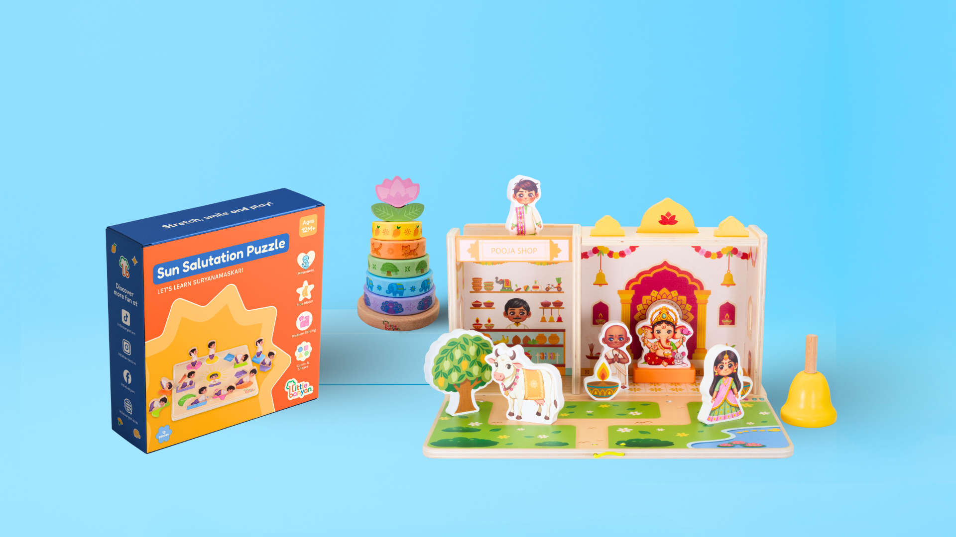 Inspired by timeless Indian stories, symbols, and rituals. Kids can connect with elements like diyas, lotus, and peacocks.